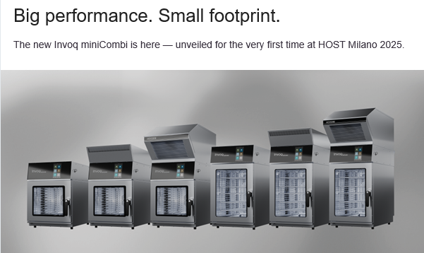 With just 51.3 cm in width, miniCombi delivers the same high-performance cooking power you expect from the Invoq family. From cafés to convenience kitchens, it’s designed for professionals who need consistency, efficiency, and smart cooking functions in a compact space.